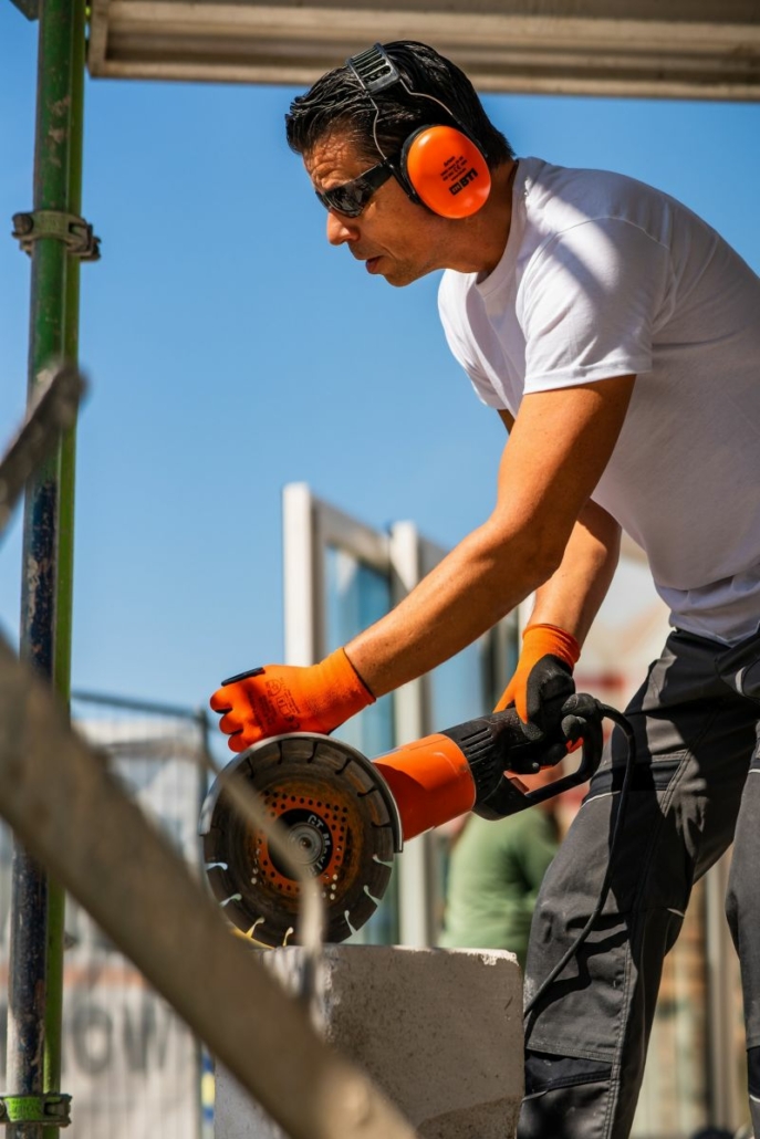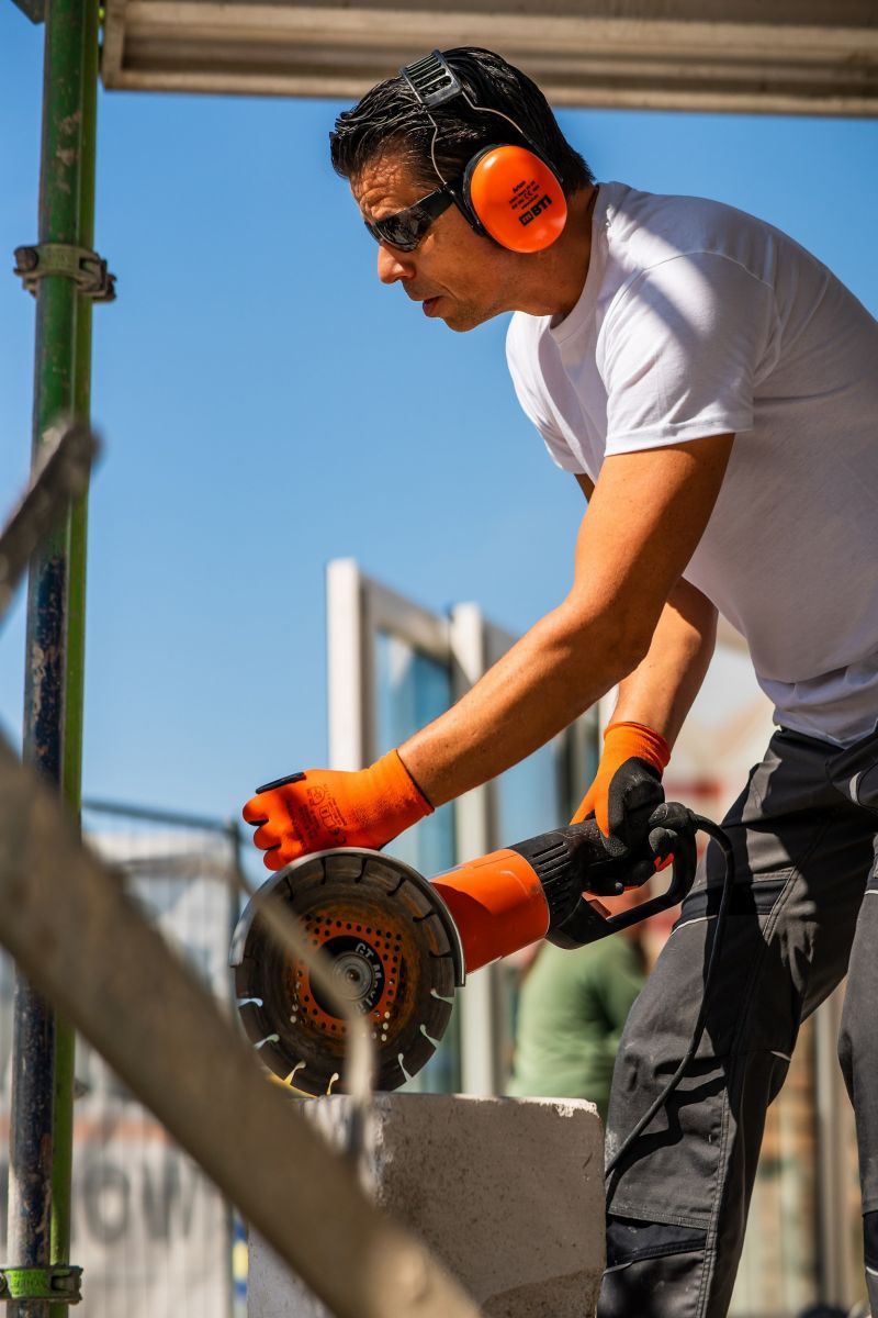 Mitten in Öhringen im Wollreffenweg wird die GAUER Baustelle zur exklusiven Shooting Location. Umringt von 4 im Bau befindlichen Mehrfamilienblöcken und neugierigen Blicken von Anwohner*innen und Bauarbeiter*innen posen die Models für den neuen BTI Produktkatalog. 2 Tage dauerte das Spektakel für Arbeitskleidung und persönliche Schutzausrüstung an.