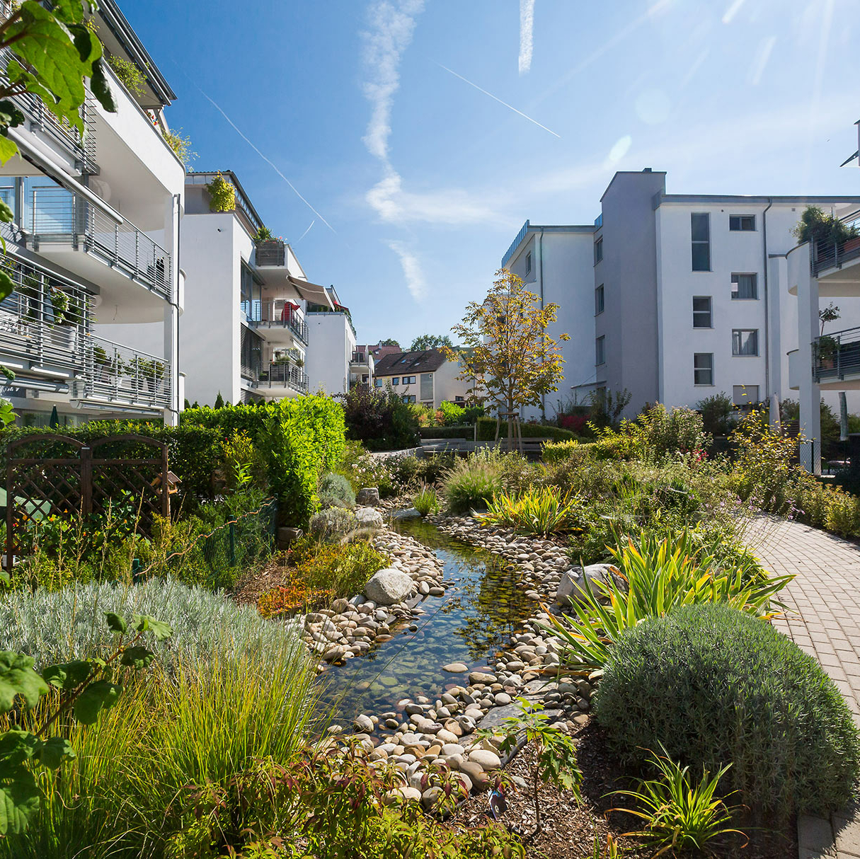 Bau- und Wohnkonzepte können einen aktiven Beitrag zum Umweltschutz leisten. Werte wie Nachhaltigkeit, Umweltbewusstsein und Naturnähe werden im Detail realisiert. Alle Gebäude der Wohnanlage werden nach dem Null-Energiestandard gebaut. Null-Energiestandard bedeutet, dass der End-Energiebedarf des Gebäudes für Heizung und Warmwasserbereitung durch das Haus selbst erzeugt wird.* Die Häuser verfügen über eine hervorragende Dämmung (Energieeffizienz 55 nach EnEV 2009).